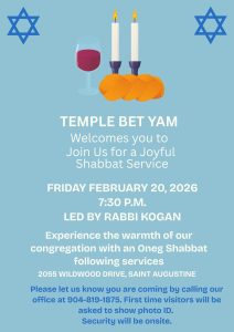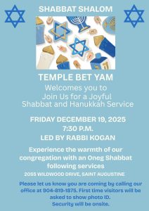 Welcome to Temple Bet Yam in St. Augustine, FL!