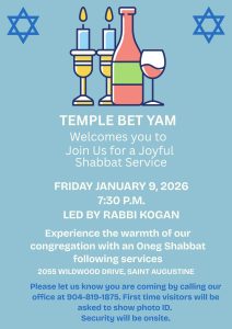 Welcome to Temple Bet Yam in St. Augustine, FL!